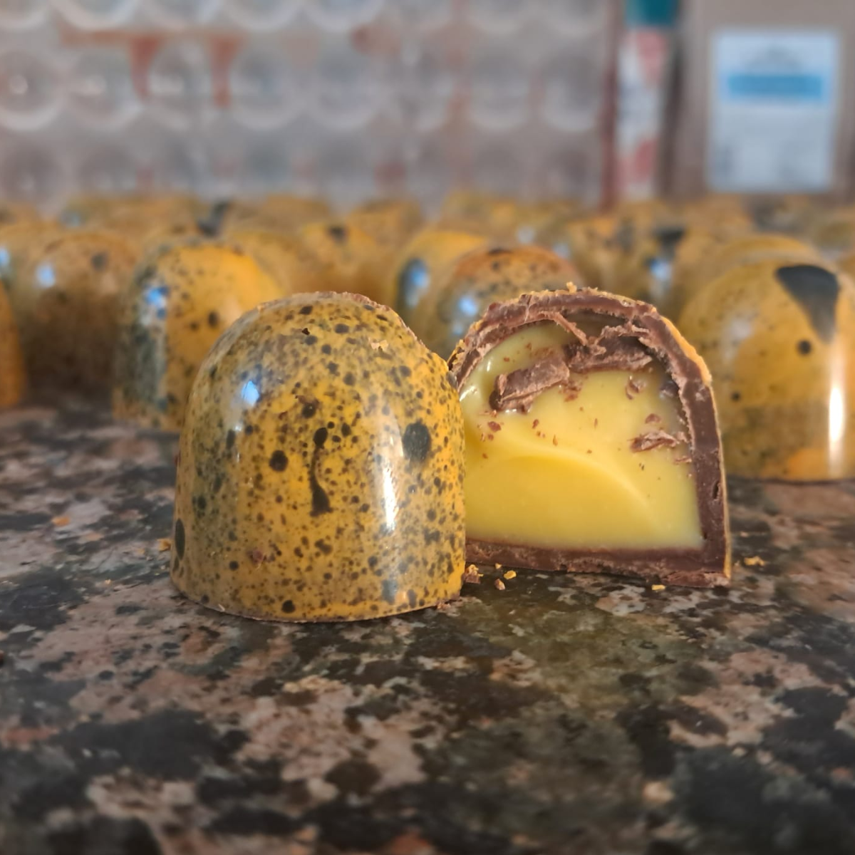 Overheerlijke pure chocolade bonbon gevuld met een zachte vulling op basis van advocaat.